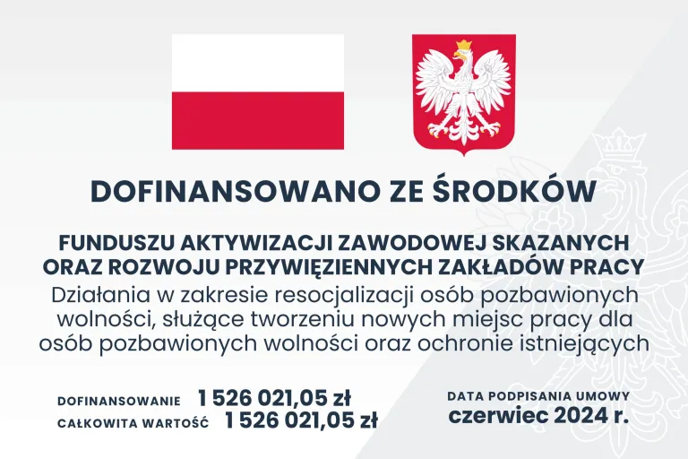 Zadanie polegało na nabyciu środków trwałych stanowiących wyposażenie Zakładu Przetwarzania ZSEiE w Łomazach. Urządzenia te pomagają w wydajnej i bezpiecznej pracy zatrudnianych obecnie osadzonych oraz tworzą potencjał do tworzenia nowych miejsc pracy dla osób pozbawionych wolności.